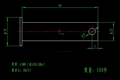 带孔销轴,材质65MN或60Si2Mn,硬度HRC55