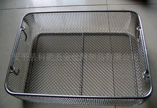 不锈钢消毒筐制造工艺:不锈钢轧花网、不锈钢电焊网、不锈钢编织网、不锈钢冲孔网、氩弧焊接等。